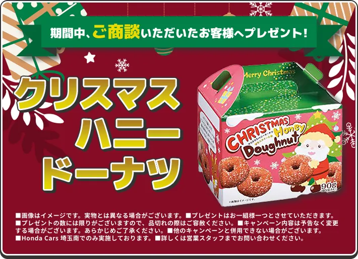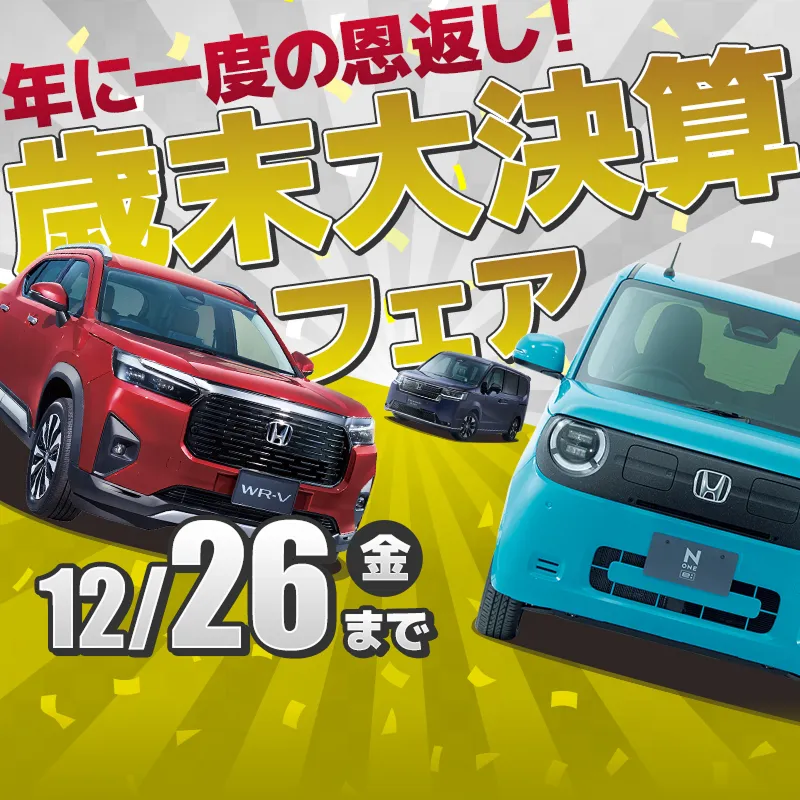 【残価設定型クレジットのお支払い例について】・上記お支払い例はN-ONE e:/WR-V/VEZEL/ステップ ワゴンは2025年11月、N-BOX/N-BOX JOYは2025年12月の一例です。・上記お支払い例は、N-ONE e:/WR-V/VEZEL/ステップ ワゴンは初回お支払い月を2026年1月、N-BOX/N-BOX JOYは2026年2月、N-ONE e:/VEZELは2025年12月、WR-V/ステップ ワゴン/N-BOX/N-BOX JOYは2026年7月(以下ボーナス月は12月・7月)で初回ボーナス月を計算した一例です。※本クレジットは最終回に、@新車に乗り換えA乗り続ける(最終回お支払い額を一括または再クレジットでお支払い)B車両を返却 のいずれかをお選びいただけます。@、Bの場合、内外装キズや走行距離などの確認事項があります。事前に定めた条件を超える場合には、その差額分を別途ご負担いただきます。詳しくは営業スタッフまでお問い合わせください。