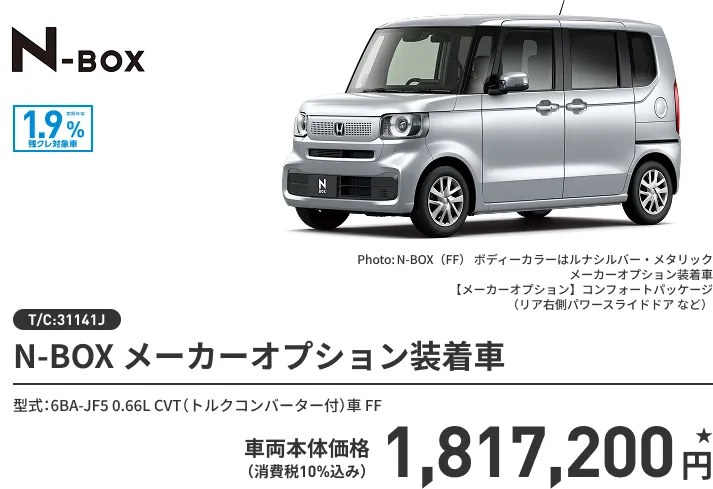 ★価格はすべて消費税 (10%) 込みの価格です。 車両本体価格には消費税以外の税金、保険料、登録等に伴う諸費用、 リサイクル料金は含まれておりません。